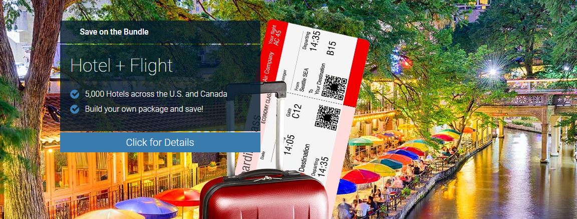 - Hotel+Flights: 2,000 cities across U.S & Canada