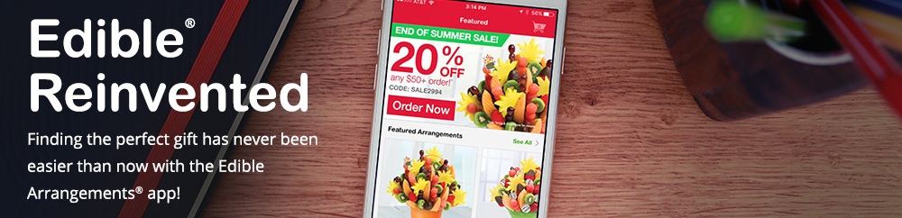 The Edible Arrangements app is intended to provide users with a quick and user-friendly method to browse, order, and enjoy the various products and services offered by Edible Arrangements. Download the app today and get a coupon for a free smoothie, fresh fruit treats, and more. Users can redeem up to 50% discount on orders of $50 or more.